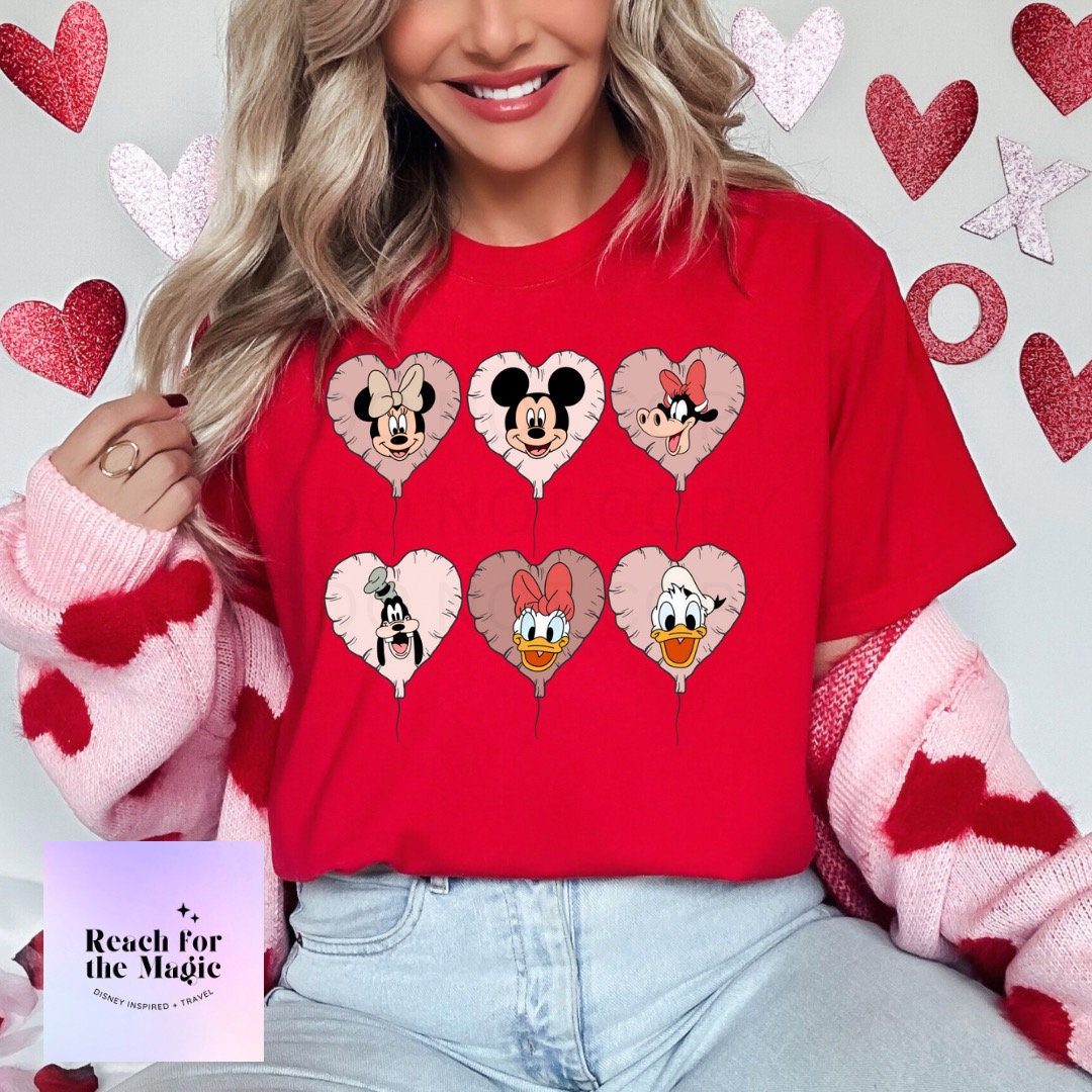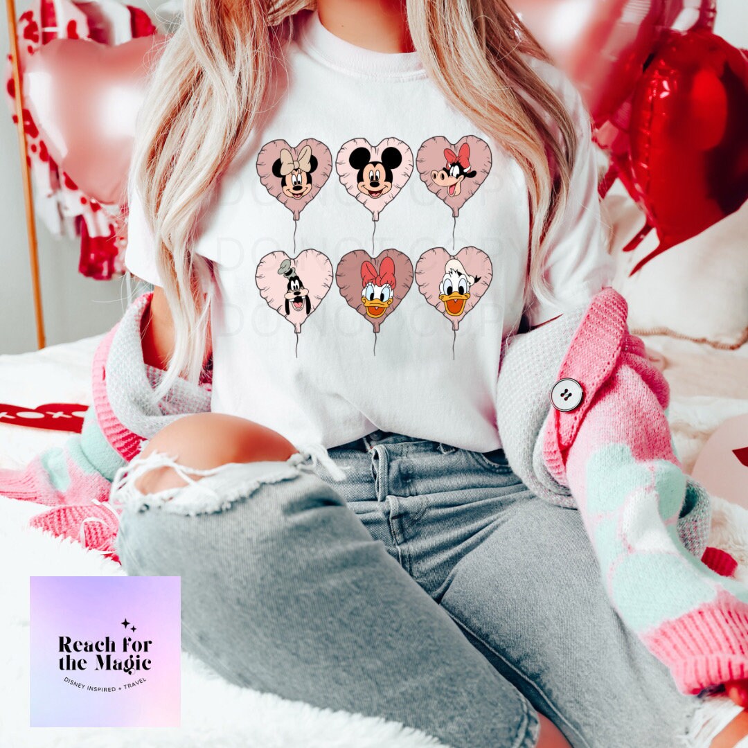 Disney Character Heart Ballloons|Mickey|Minnie|Goofy Comfort Colors Graphic Tee