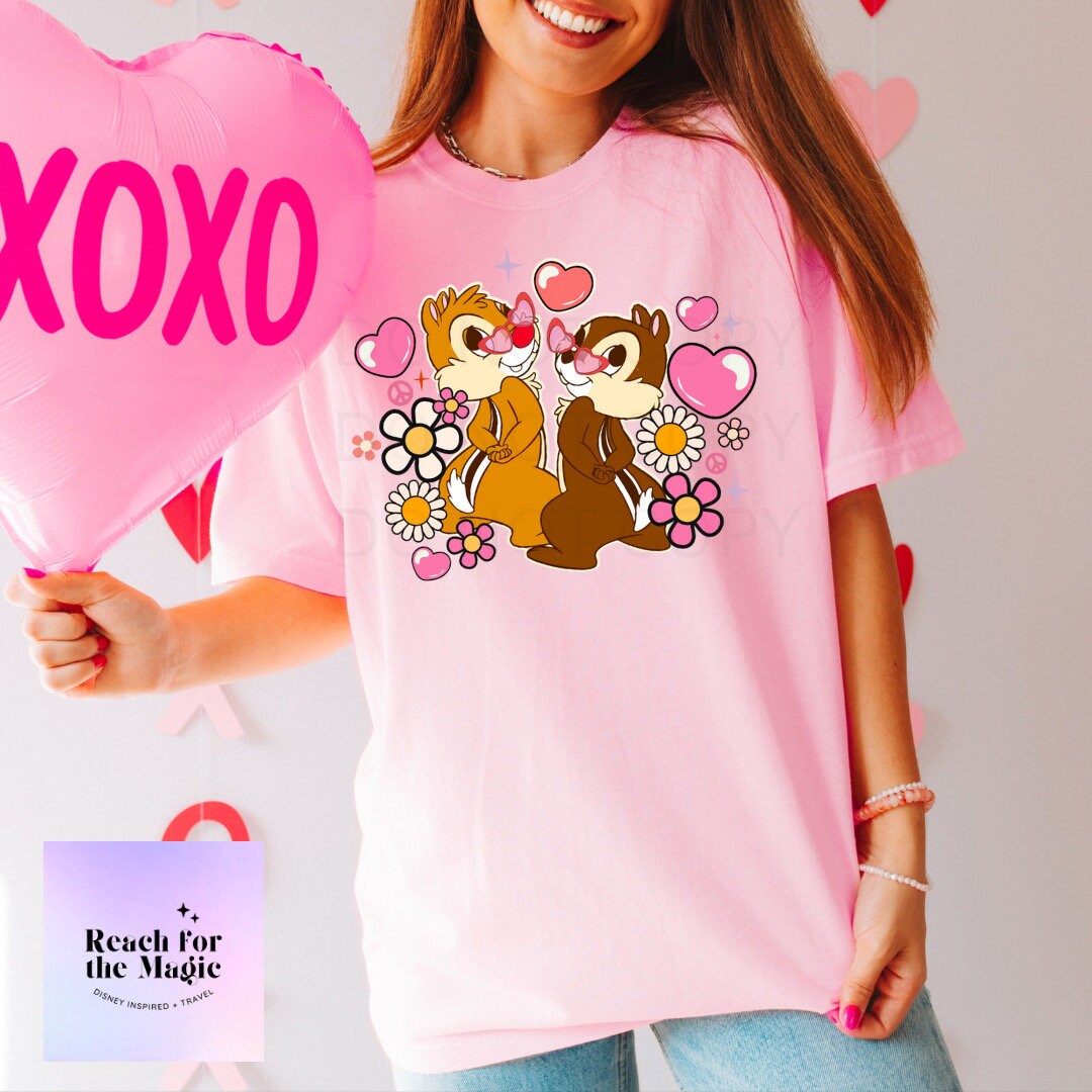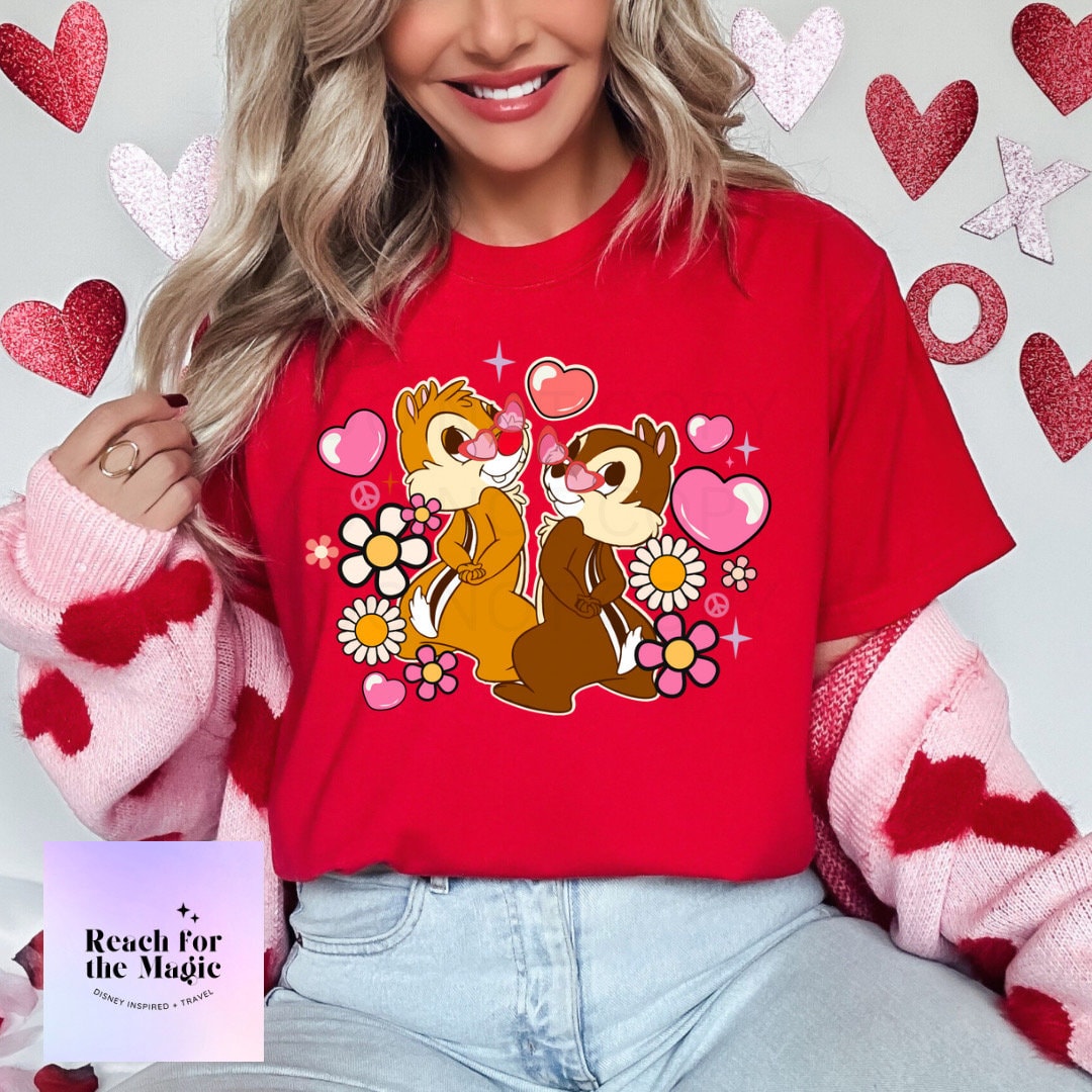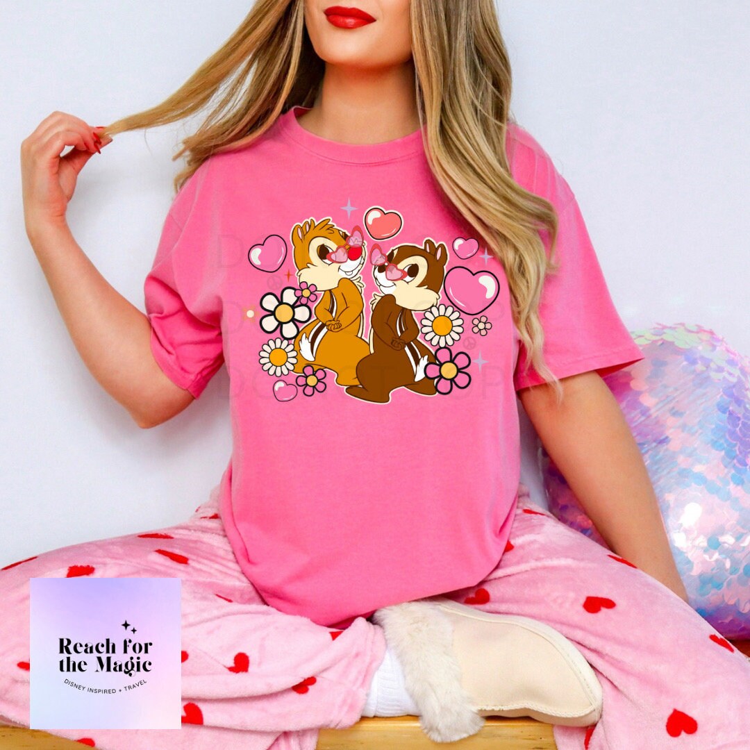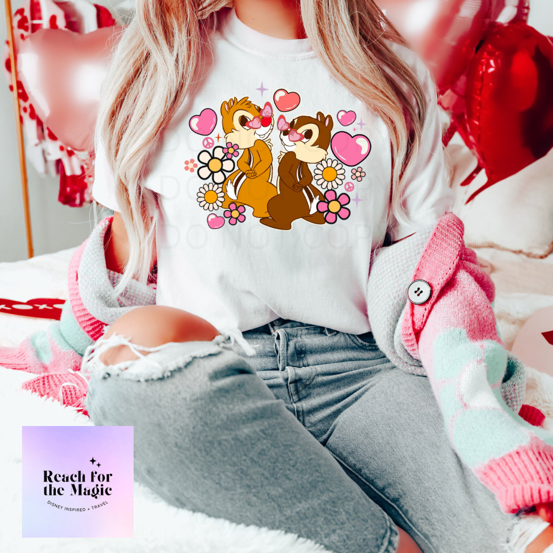 Chip and Dale Heart Eyes Comfort Colors Graphic Tee