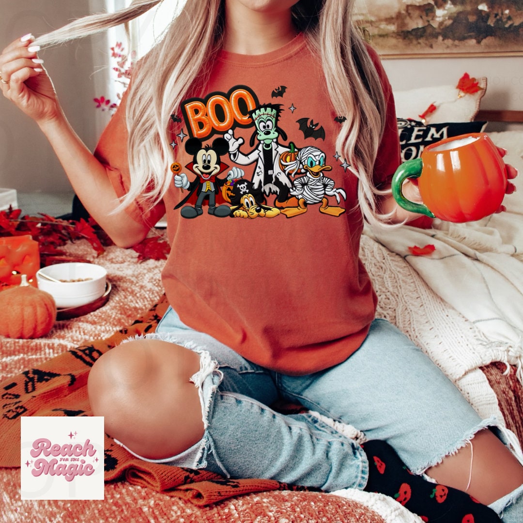 Faux Embroidery | BOO | Mickey, Goofy, Donald, and Pluto Halloween Comfort Colors Graphic Tee
