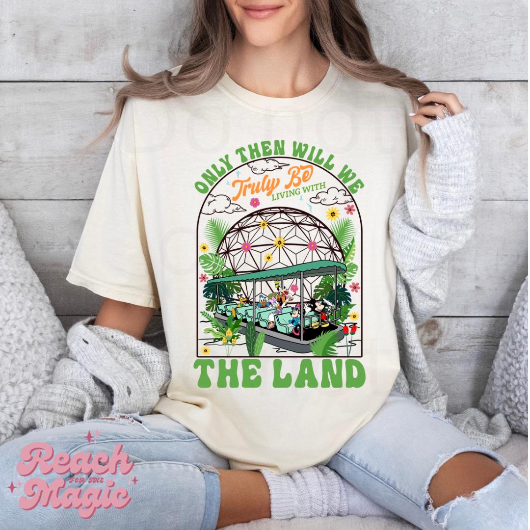 Embrace the magic of Disney’s Living with the Land with this iconic tee featuring the memorable quote, "Only then will you be truly living with the land." Inspired by the Epcot attraction, this shirt celebrates the beauty and sustainability of nature while offering a comfortable, relaxed fit for everyday wear. Whether you’re a Disney enthusiast or a lover of the environment, this tee brings a touch of Epcot’s timeless wisdom and charm to your wardrobe. Perfect for theme park trips, casual outings, or just showing off your love for Disney’s commitment to the land!