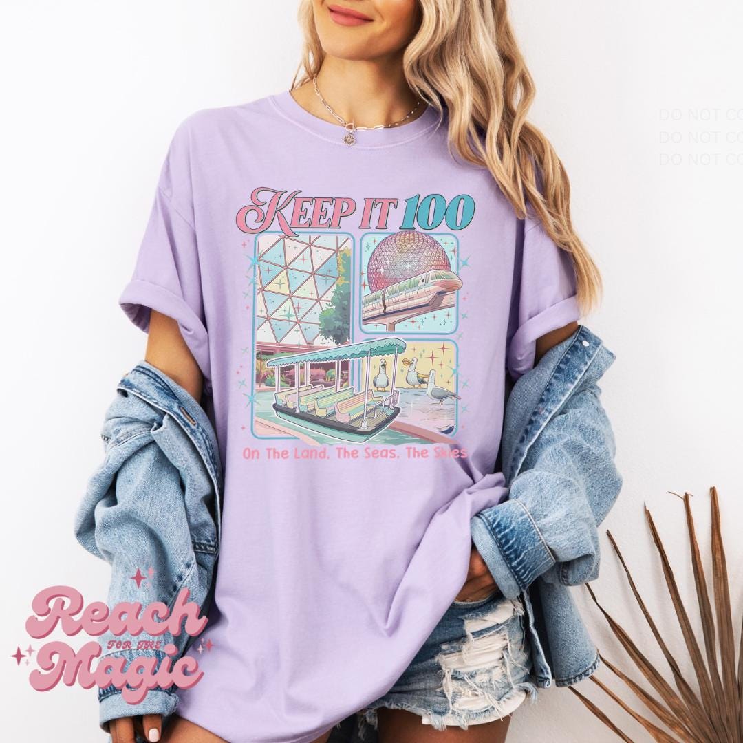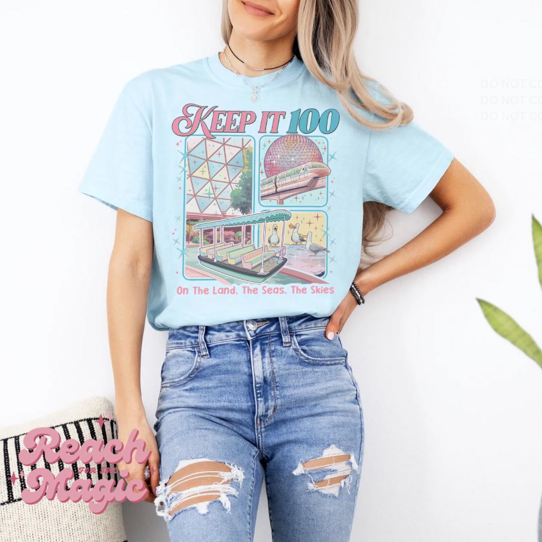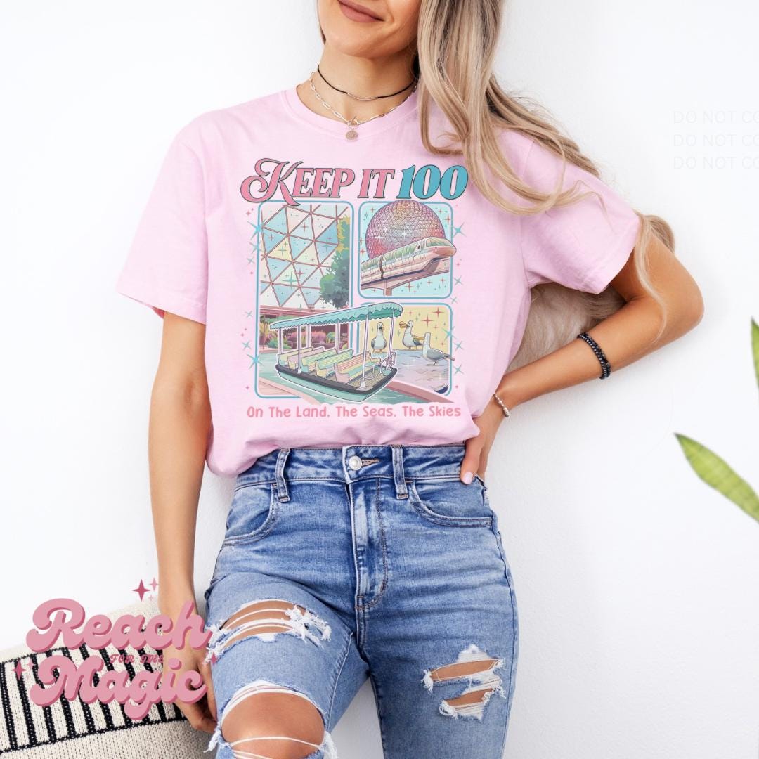 Bring the magic of Disney to your everyday style with this Keep It 100 Disney Shirt, inspired by the iconic parks — on land, sea, and sky! ✨