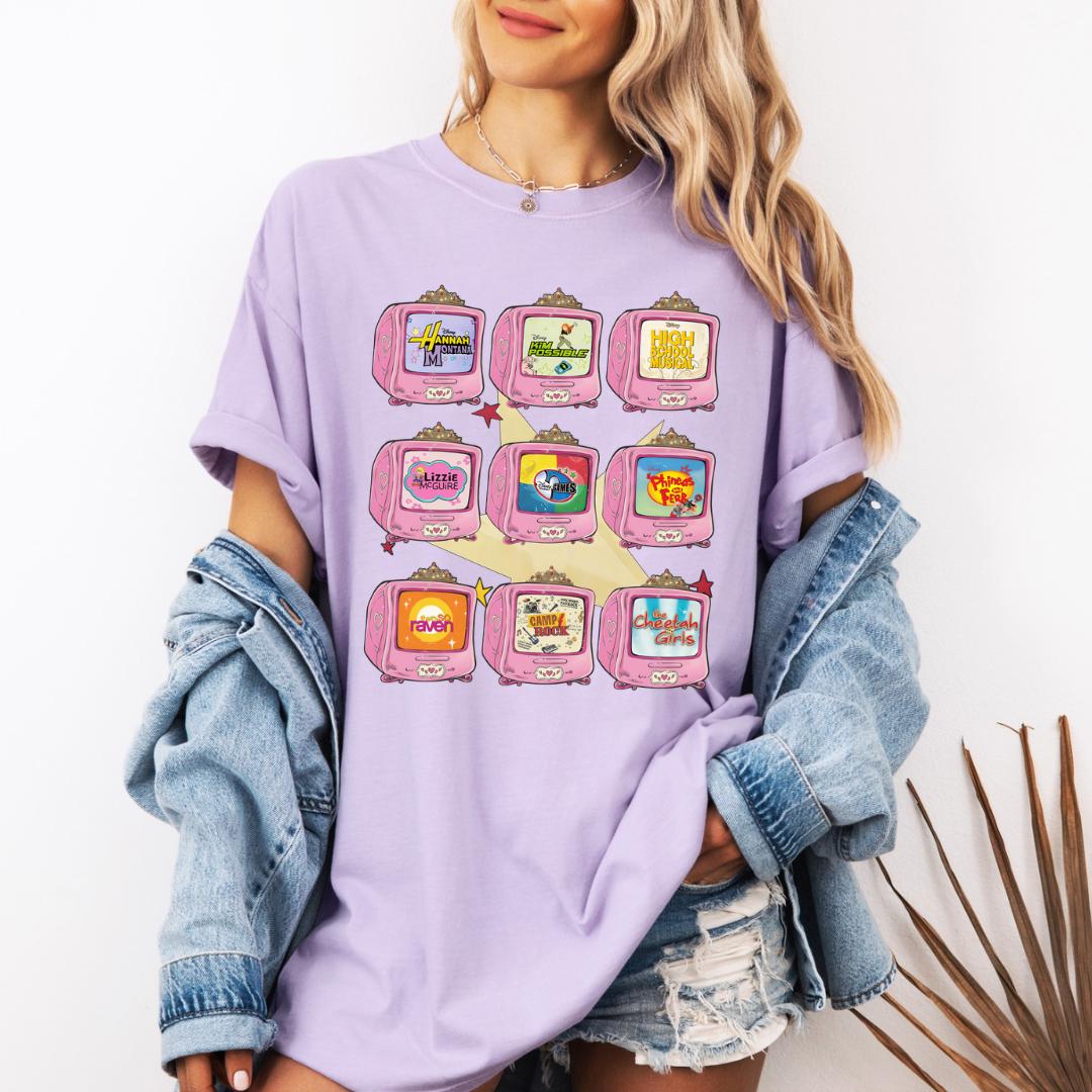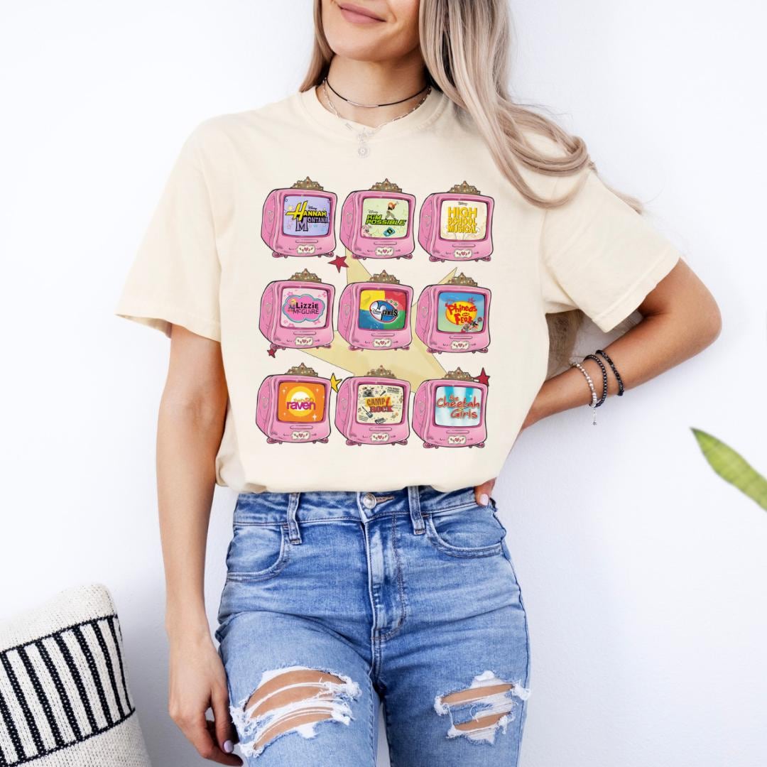 Take it back to the golden era of after-school TV with this 2000s-inspired Disney Channel aesthetic tee 💫 From iconic theme songs to unforgettable characters, this design is a love letter to the shows that defined a generation.